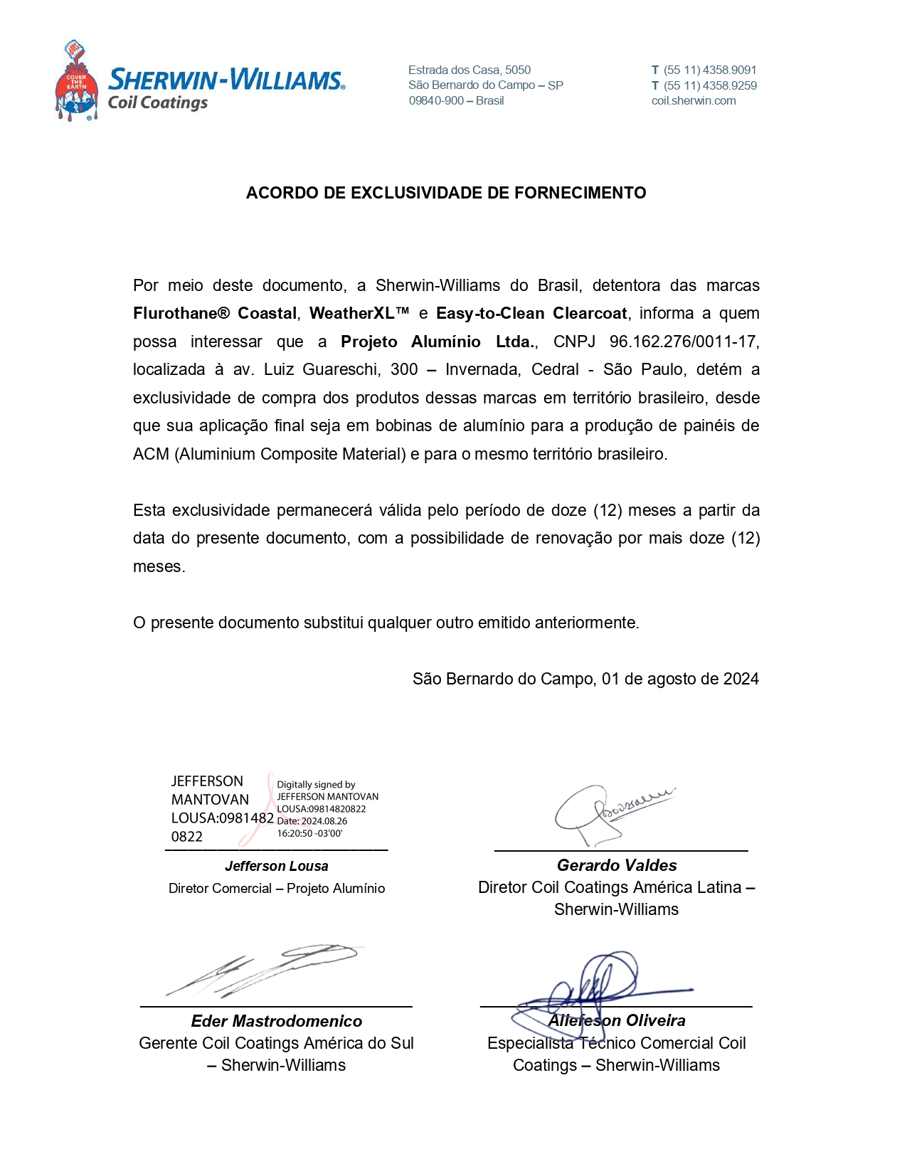 Producido en Brasil con materias primas estadounidenses, nuestro ACM ofrece rendimiento, calidad y seguridad según los estándares internacionales más exigentes.
