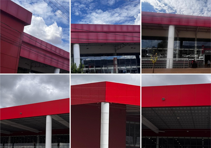 - Versatilidade Criativa para Arquitetos: A possibilidade de grandes modulações e a capacidade de conformação do ACM (como dobras, perfurações, curvas, entre outras) concedem ao arquiteto uma liberdade criativa sem precedentes. Recentemente, o ACM ganhou diversos tipos de acabamentos e texturas, o que tornou o produto mais fiel a materiais naturais, como madeira, pedra, granito, além de concreto e aço Corten (leia mais aqui). Essa flexibilidade permite a transformação da edificação existente de maneiras inovadoras, introduzindo novas linhas, cores e texturas que conferem um aspecto verdadeiramente contemporâneo ao projeto. O ACM abre um leque de possibilidades para reimaginar o design e integrar a construção ao cenário urbano atual.